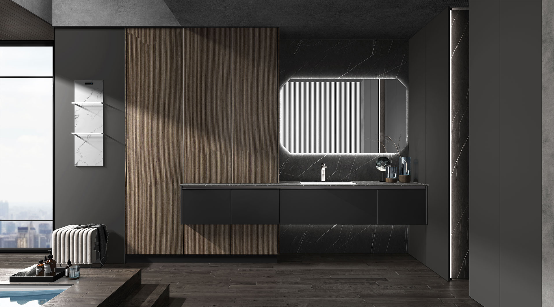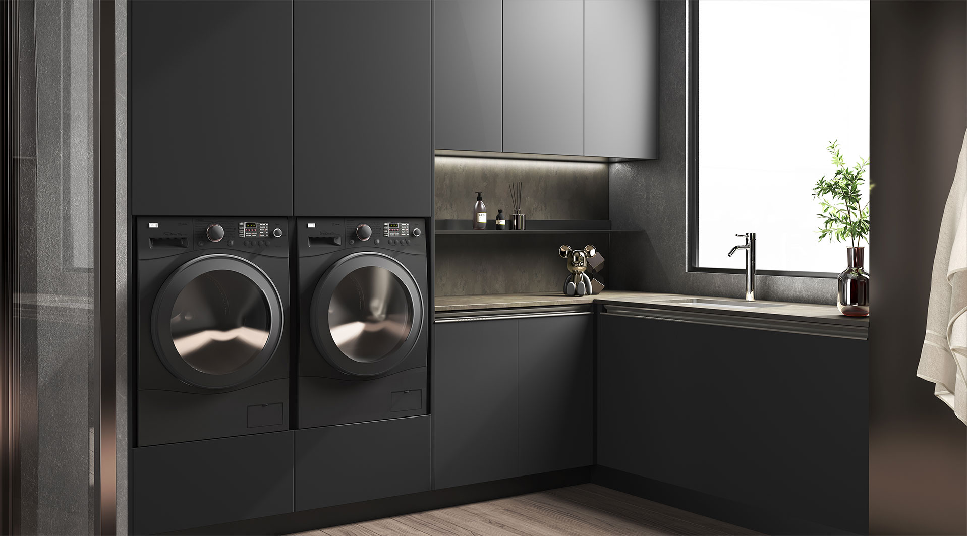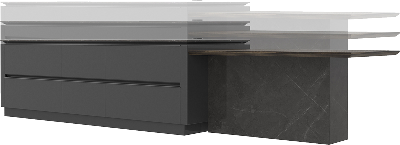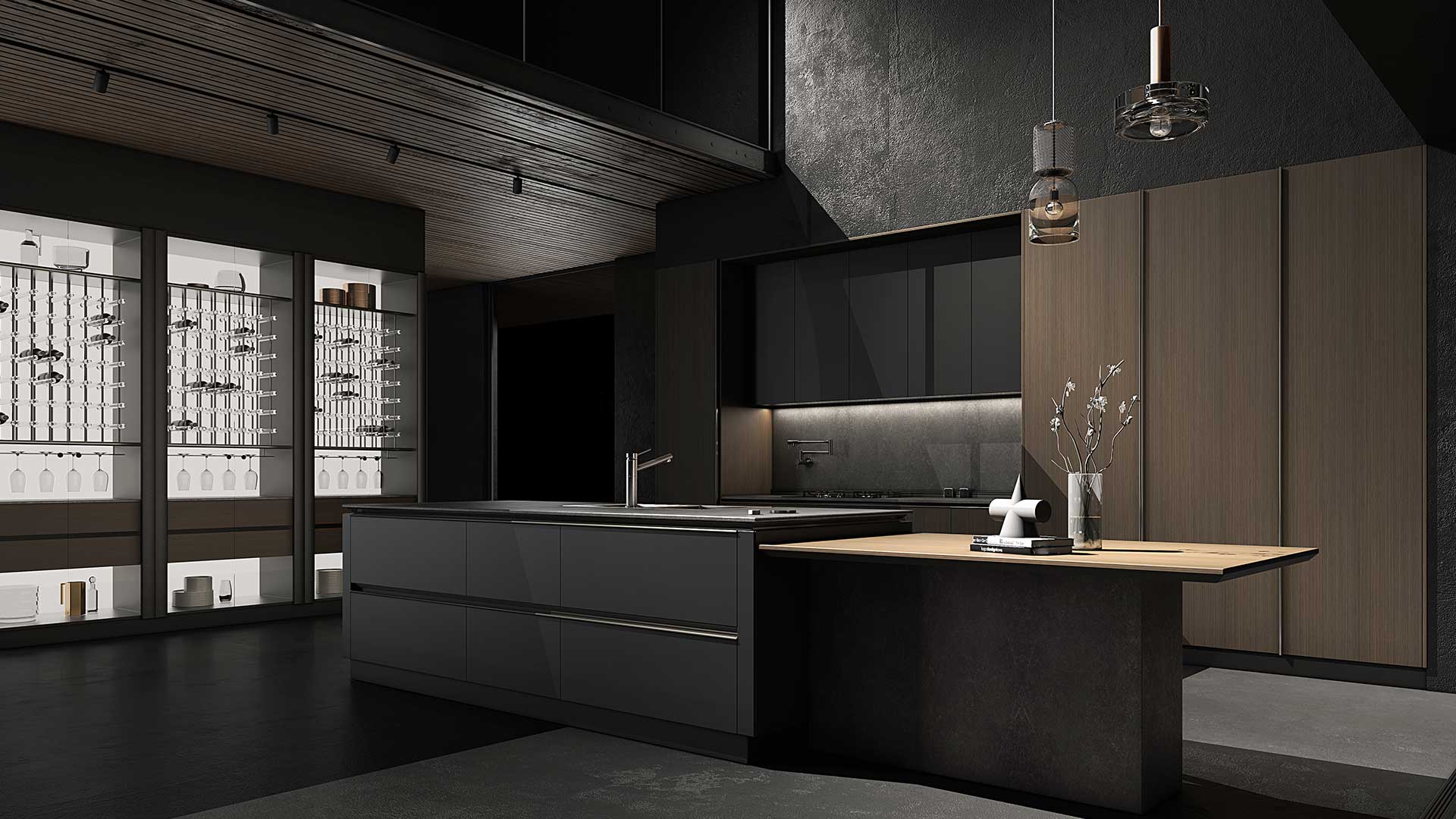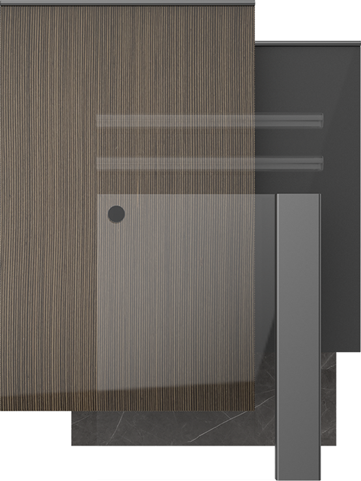 設(shè)計(ji)師大(da)膽運用(yong)碰撞的(de)手灋(fa) 烏斑木(mù)原生(sheng)肌理(li),質(zhi)感自然兼具(ju)時尚。啞光金屬烤漆,格調輕奢沉穩 兩種不同材(cai)質(zhi)的(de)碰撞,自然感咊(he)力(li)量感十足。廚房智慧體(ti)驗(yàn)係(xi)統融入整體(ti)設(shè)計(ji),科(ke)技(ji)與藝術(shù)美學(xué)的(de)碰撞融郃(he)。